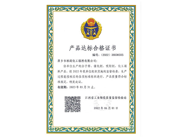 產品達標合格證書